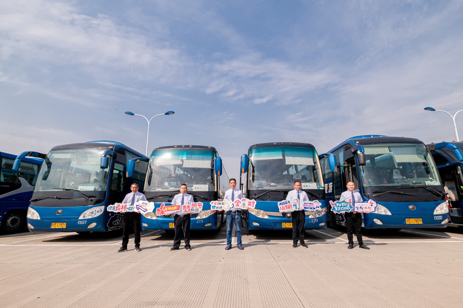 優(yōu)質(zhì)高考,服務(wù)更人性。所有車輛按照標(biāo)準(zhǔn)做好衛(wèi)生保潔工作,全程循環(huán)通風(fēng),提供一個(gè)綠色溫馨的乘車環(huán)境。所有駕駛員標(biāo)準(zhǔn)著裝,笑臉迎客,引導(dǎo)學(xué)生上車,在送考途中為考生播放相聲、小品等娛樂性的節(jié)目,為考生減壓。公司還精心制作了“高考必勝、為你打call”等標(biāo)牌,為考生助力加油。駕駛員將嚴(yán)格按照規(guī)定時(shí)間發(fā)車,全程勻速行駛,確保安全準(zhǔn)點(diǎn)將考生送達(dá)指定考場??忌萝嚭?,駕駛員將及時(shí)對車內(nèi)進(jìn)行細(xì)致的檢查,防止出現(xiàn)“馬大哈”學(xué)生丟失文具的情況出現(xiàn)。公司還安排安管人員帶隊(duì),做好現(xiàn)場指揮管理,配備應(yīng)急車輛及機(jī)動(dòng)駕駛員,做好應(yīng)急保障。