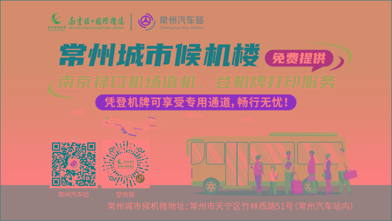 4月1日起,常州至南京祿口國際機(jī)場專線再次升級,在常州候機(jī)樓即可辦理值機(jī)、免費(fèi)打印登機(jī)牌,并享受祿口機(jī)場專用通道,商務(wù)出行更高效,度假旅行更輕松。